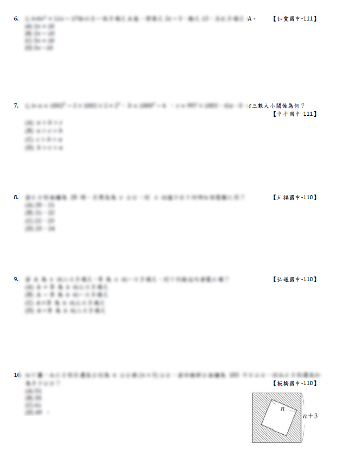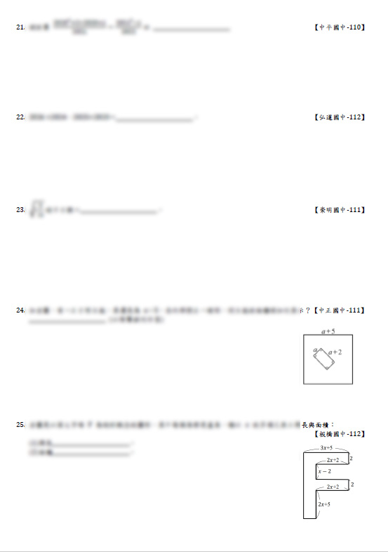 適用範圍:八年級(上)第3冊:乘法公式、多項式加減乘除、平方根近似值